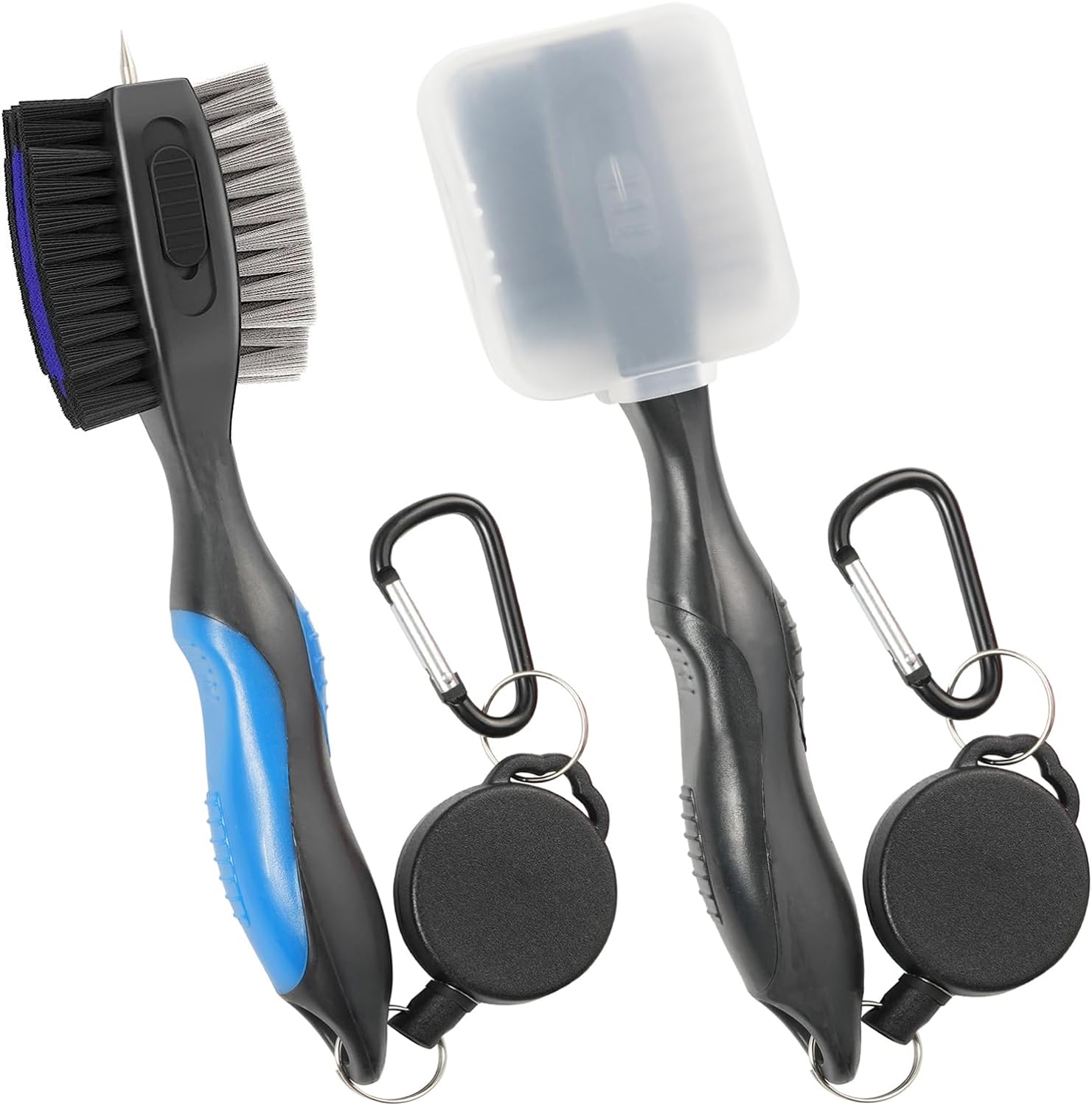 Golf Club Brushes, Golf Cleaning Tool, with Retractable Cleaning Nails, Nylon and Wire Bristles Oversize Double Brush Head with 2ft Retractable Zip-line Metal Buckle